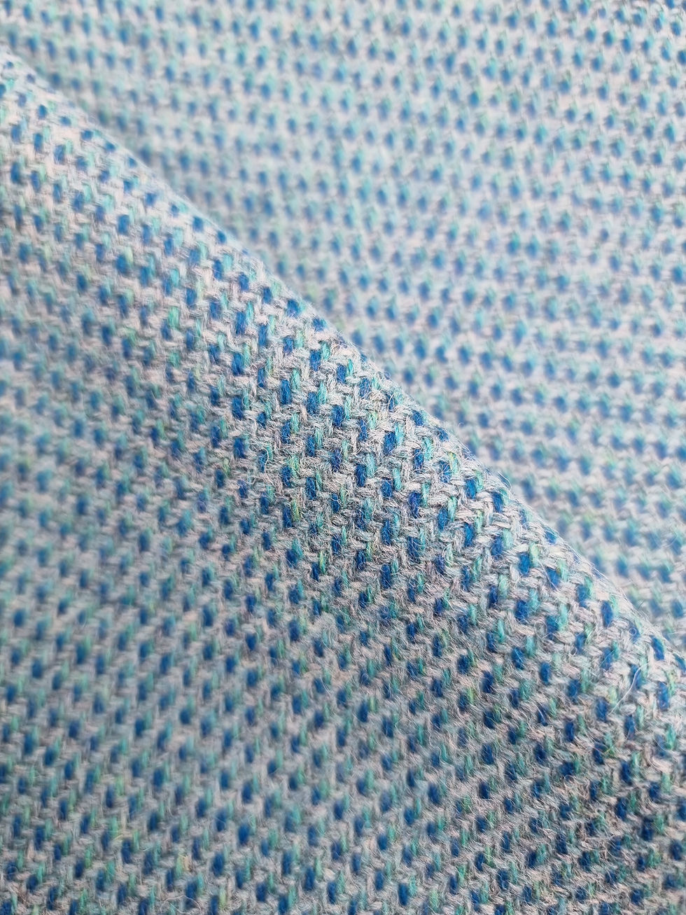 Handwoven by my sister Martha on our two Hattersley looms and designed by us together our fabrics are each woven as a unique roll, we never do two exactly the same so once its gone, its gone! Perfect for creating beautiful textile pieces ranging from suiting to soft furnishings to casual wear to accessories - the use is limited only by imagination!